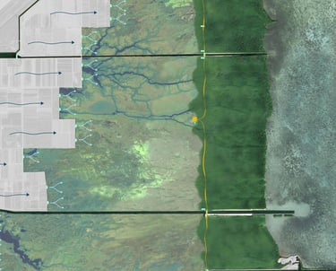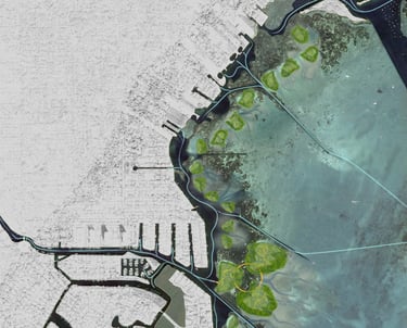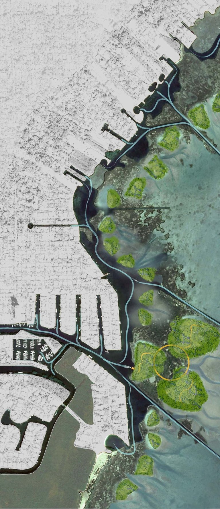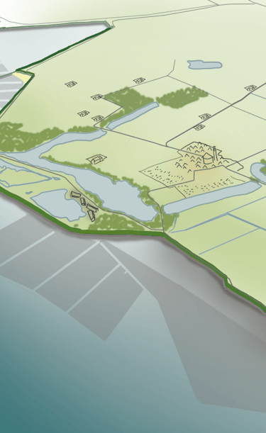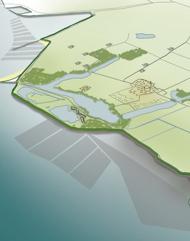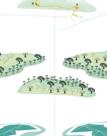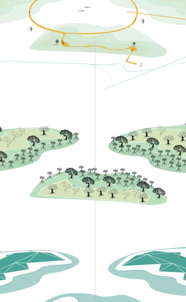 Providing detailed technical illustrations and bird’s-eye perspectives to enhance the understanding of the intersection between landscape and seascape for a more resilient approach to living, agriculture, recreation.